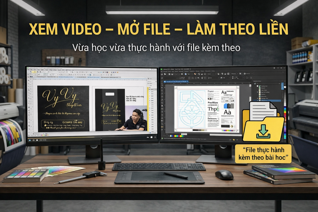 Dù Đồng Nghiệp là người mới, không rành gì về Corel, hoặc là người trẻ hay có tuổi đi chăng nữa, cách học này nó giống như là có người thầy ngồi gần bên bạn hướng dẫn trực tiếp, và đây là giáo trình đã đem lại thành công cho hơn 400 học viên trong suốt hơn 2 năm vừa qua, Đồng Nghiệp chỉ cần mở video và mở file thực hành và làm theo là mình đảm bảo luôn Đồng Nghiệp sẽ tự cảm nhận về sự thật đó là: học thiết kế không hề khó như bấy lâu mình vẫn nghỉ.